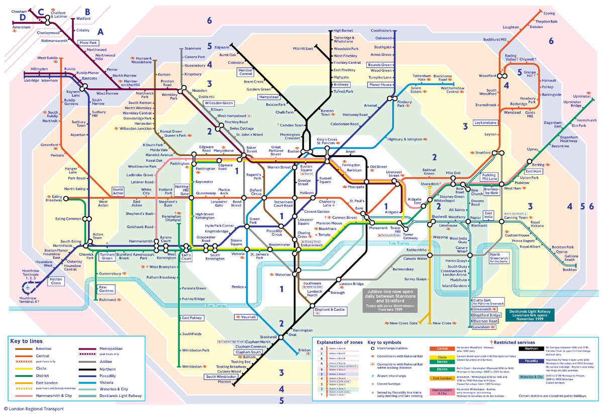 Der nachstehende Plan stammt von der London Transport Authority und stellt das Netz der Londoner U-Bahnlinien dar.